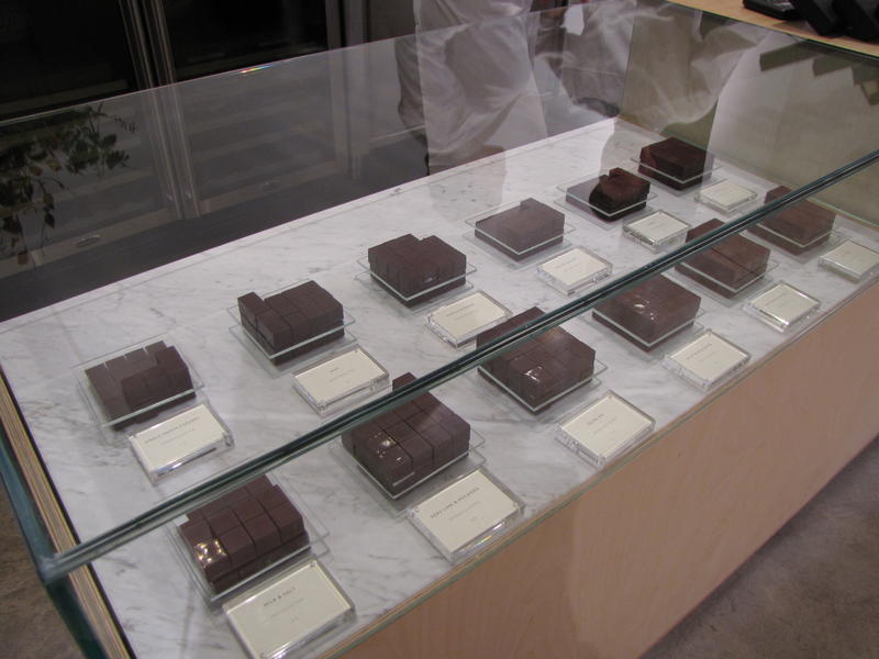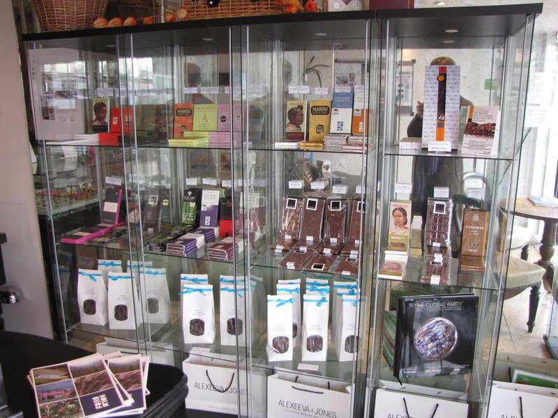 Non seulement chocolatière, Alexeeva, la propriétaire a pris le parti de faire découvrir de nouveaux horizons à ses clients. A l’instar de Mococha ou Via chocolat chez nous, elle propose des bonbons de divers artisans d’Angleterre, France, Belgique ou Suisse, les renouvelant régulièrement. On y trouve aussi un très grand choix de tablettes de pays différents. Elle propose aussi quelques boissons dont plusieurs chocolats chauds et c’est chez elle que j’ai bu le meilleur chocolat chaud de mon séjour : le mélange maison préparé avec un cacao fumé. J’ai trouvé ses ganaches plus subtiles que les précédent chocolatiers mais un peu gâché par une couverture trop épaisse.