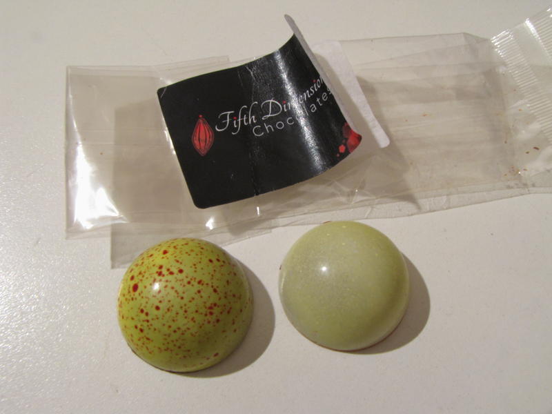 Et finalement j’ai testé des bonbons de Lauden Fine Chocolate, assez colorés, j’ai bien aimé la définition de "chocolat" en français. Les parfums sont assez frais et le chocolat long en bouche mais une fois encore la couverture est épaisse.