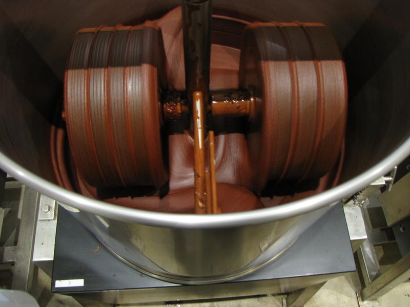 Après un petit tour autour de Brick Lane où l’on peut y admirer de superbes street-art, je retourne chez Mast Brothers pour la visite de leur atelier. Il font tout le travail de la fève à la tablette (Bean to bar si on veut faire tendance). Autant je connais le processus de fabrication, autant je n’avais pas vu les machines tourner en vrai. Et bien maintenant c’est fait et j’ai eu de la chance, je suis arrivé pile poil au moment où l’on versait le grué dans les machines. J’ai donc pu voir quasiment toutes les étapes de la fabrication d’une tablette de leur nouvelle gamme (qui ne devait sortir que quelques semaines après mon retour). J’ai eu la surprise d’apprendre qu’après le conchage des fèves, ils faisaient vieillir le chocolat quelques mois avant de le tempérer et le mouler en tablette.
