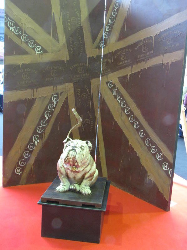 Le grand jour est arrivé. Ce qui me frappe en premier lieu c’est que je n’ai eu qu’à attendre 10 minutes avant d’avoir mon billet. Ensuite, si le salon est tout petit, il n’est pas aussi bondé que sa contrepartie parisienne et c’en est extrêmement agréable. J’ai pu pleinement prendre mon temps pour découvrir les artisans présents seulement sur l’édition anglaise du salon. Entre autres les ganaches de fifth dimension ou les tablettes de l’anglais Duffy’s, celles de l’écossaise Charlotte Flower avec une infusion de pin écossais ou de l’américain Coleman & Davis. Ce dernier m’a particulièrement surpris : l’archétype du parfait entrepreneur américain (grand musclé avec le sourire ultra-brite et un brushing du jour et qui pourtant tient un discours d’amoureux du chocolat ("frottez votre chocolat, sentez le, écoutez le croquer sous la dent, prenez votre temps, laissez le fondre dans votre bouche"). Coleman & Davis ne font qu’une tablette de Madagascar pour le moment mais doivent élargir leur gamme dans les mois qui viennent.