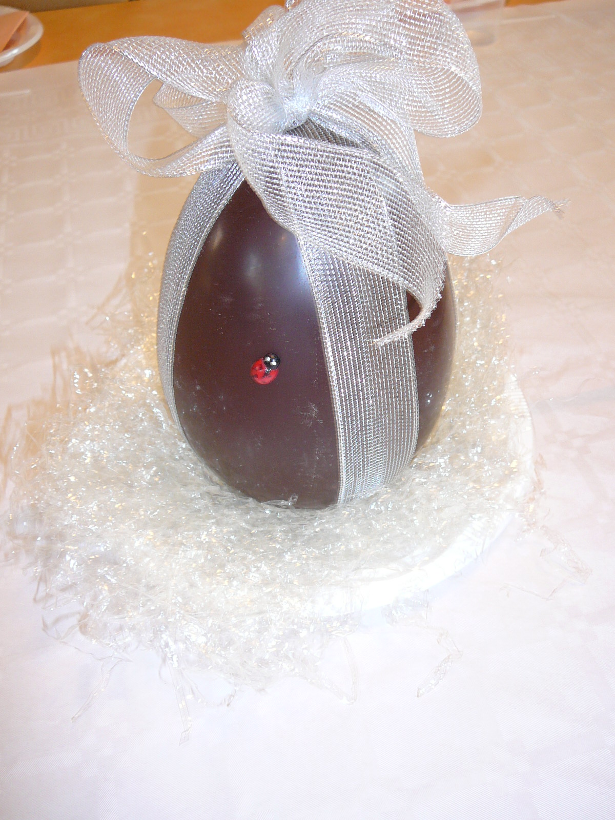 Le premier œuf est en fait une cloche. C’est un moulage à 67% entourée d’un nœud.