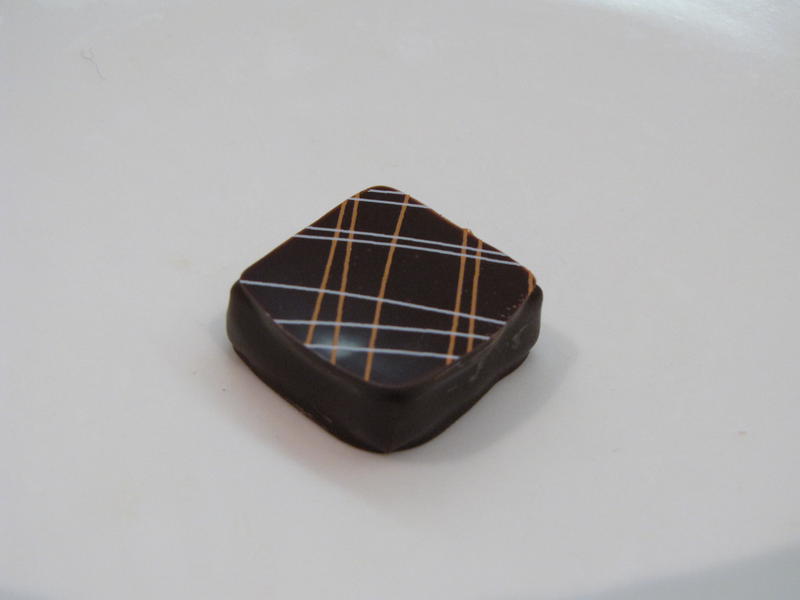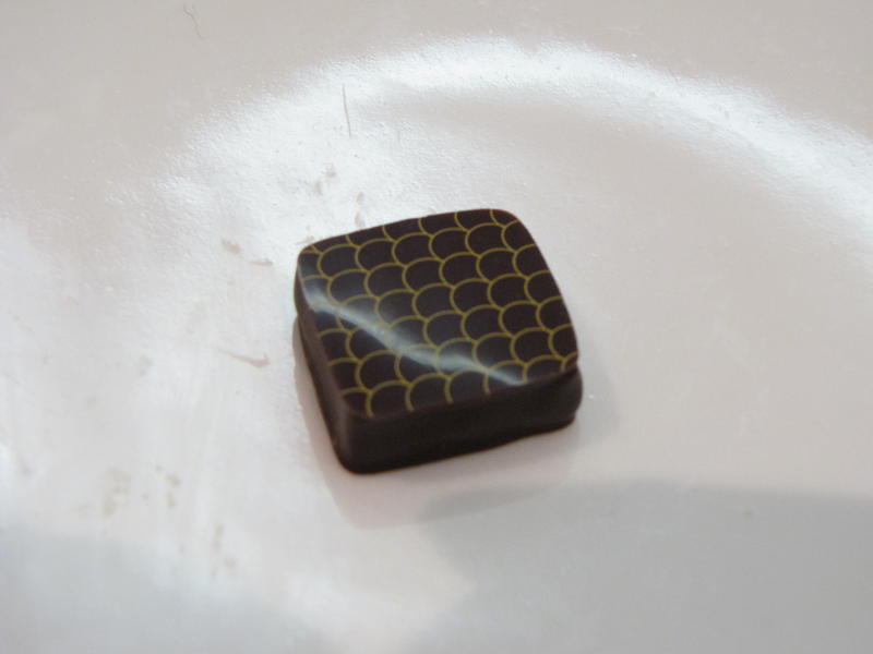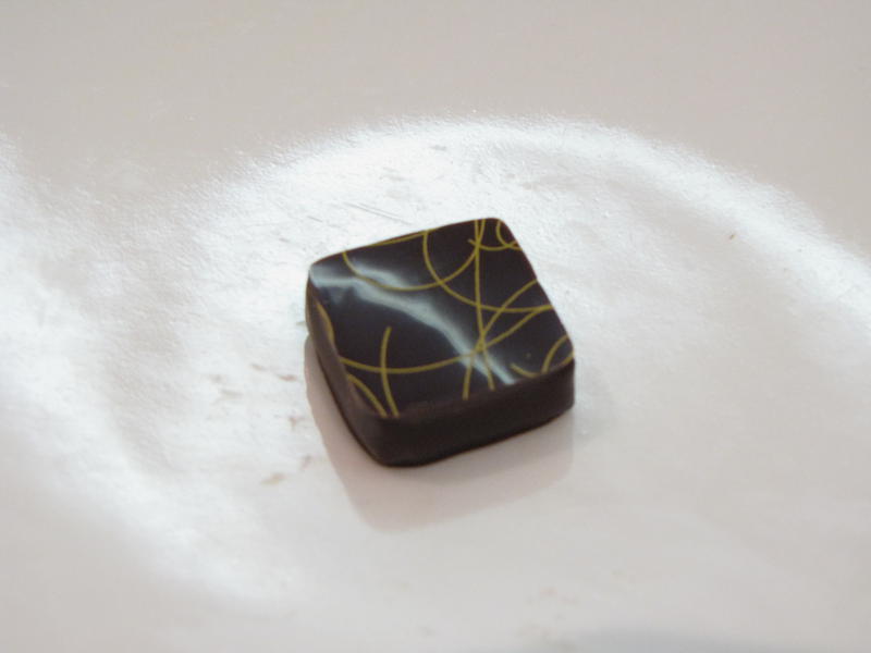 Les ganaches sont toutes réalisées à partir de grands crus Valrhona garantis Criollo . Les couvertures sont fines, elles sont cassantes puis la ganache est fondante, lisse. L’équilibre entre le parfum et le cacao est particulièrement équilibré et complexe. Nous nous amusons à deviner les épices, les fruits, les herbes qui infusent à froid dans la crème et qui donnent à ces ganaches tout leur arôme. La longueur en bouche est surprenante, rien n’est trop prononcé et nous allons découverte en découverte.