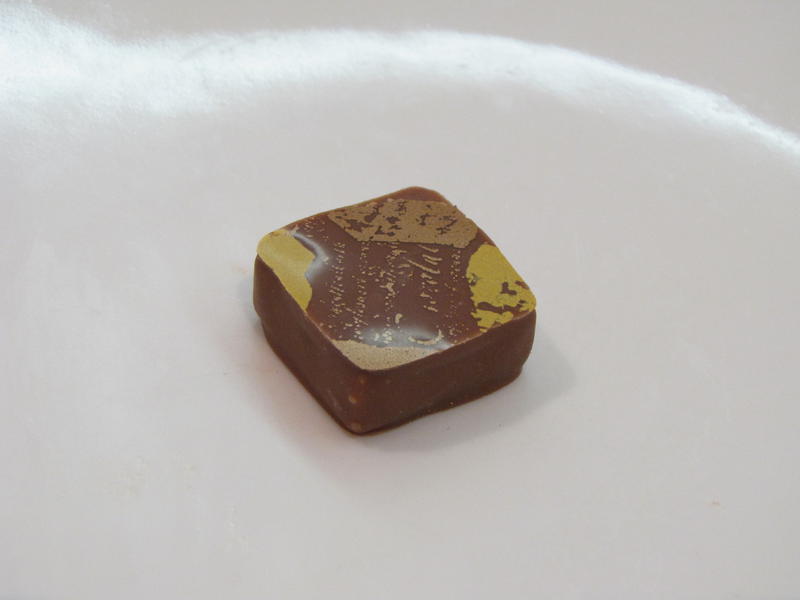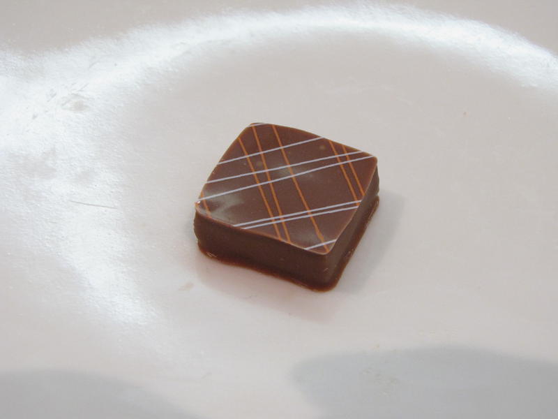 Notre dégustation commence à l’inverse de nos habitudes, par une tarte chocolat et une tarte caramel, miel et noix, puis un chocolat chaud. Vient seulement après la dégustation des ganaches, petits carrés de 5g parfaitement enrobés. Malgré le nombre surprenant (10 bonbons) sans eau ni pain entre chacun, entrecoupé par une pâte de fruits, parfumée à la fraise, banane, melon, griotte-eucalyptus, framboise-rose et la liste est encore longue, des caramels, noix de pécan, macadamia, nous sommes surpris par la facilité à déguster autant de merveilles sans arriver à saturation.