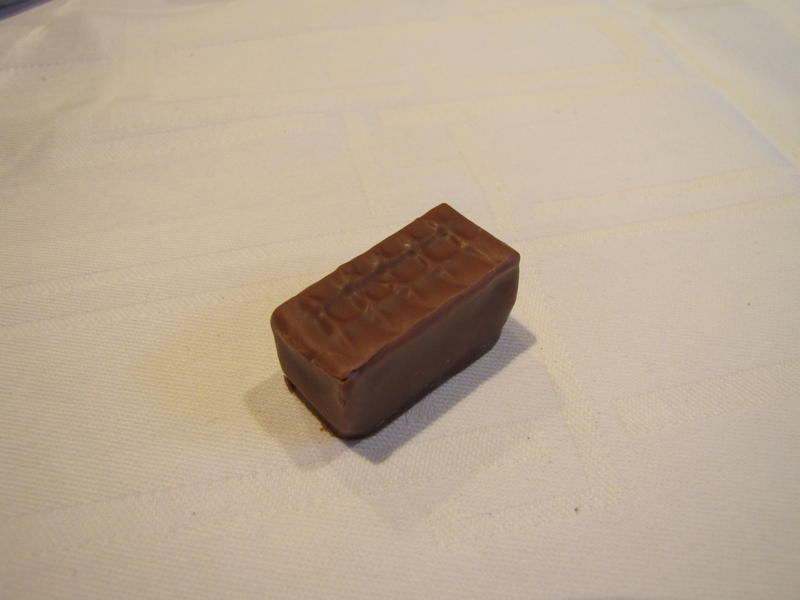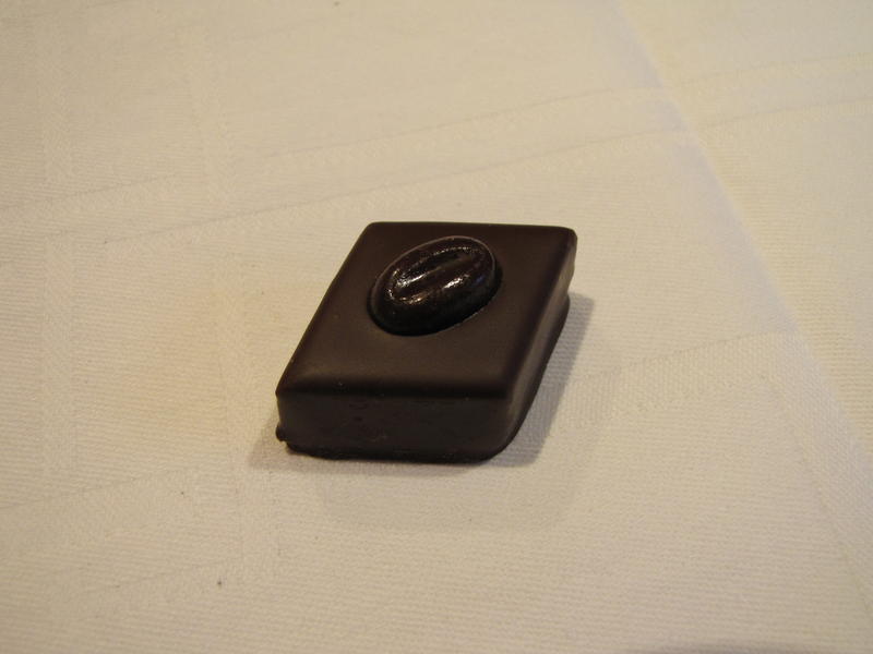 La dégustation de ce café spécialement choisi pour se marier avec le chocolat laisse désormais place à un premier bonbon de la Maison du Chocolat. Celui-ci laisse à peine transparaître la saveur de café mais quelle perfection quant au fondant de cette ganache au lait infusée au « moka » !