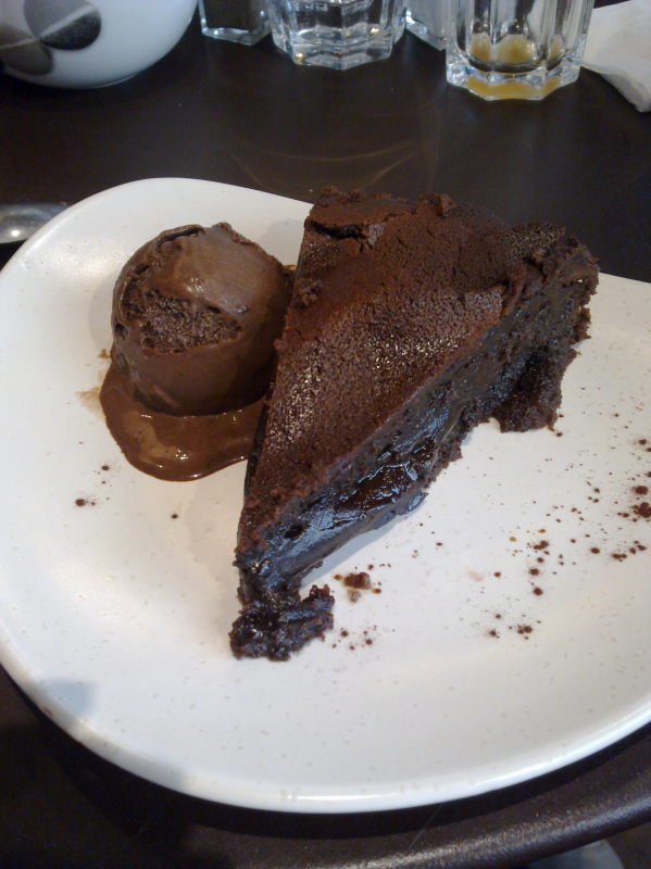 Pour finir ce copieux brunch, Guillaume nous fait choisir entre un moelleux ou brownie, accompagné d’une glace chocolat noir, ou tonka, pistache ou vanille ou un sorbet cassis, framboise, ou abricot,