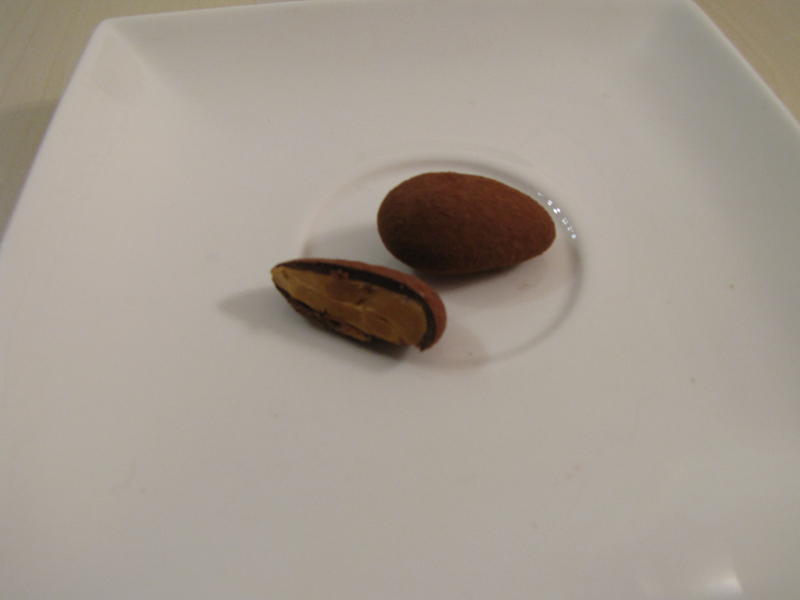Nous passons ensuite à la dégustation d’amande d’Espagne torréfiée et caramélisée enrobée de cacao. Là, nous apprenons deux sortes de dégustation, la première, classique, de croquer dans l’amande, la seconde est de laisser fondre sur la langue et tous les arômes arrivent peu à peu, mais les plus gourmands ont du mal à résister…