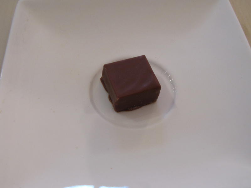 Nous avançons dans cette généreuse dégustation et goûtons un lait Ariba Equateur de Domori à 38% de chez F. Daubos, on croirait que c’est un bonbon au caramel, mais il est seulement au lait, il est très sucré et collant.