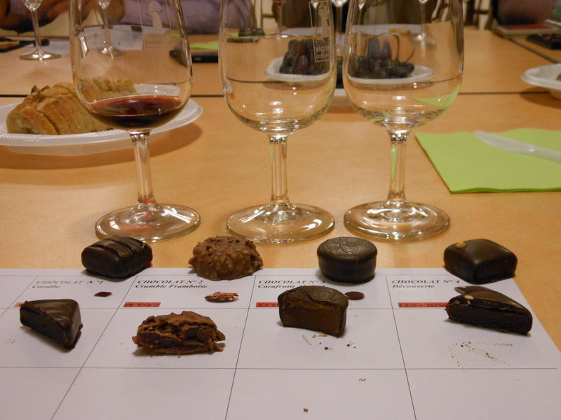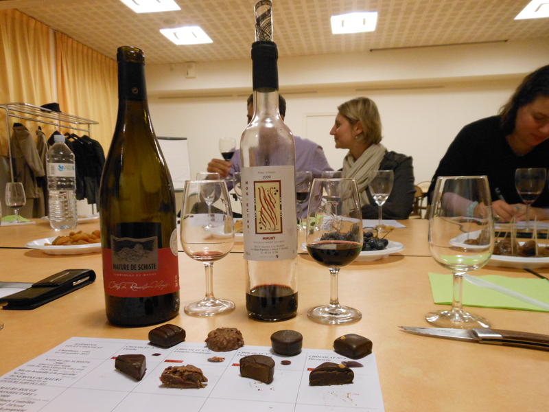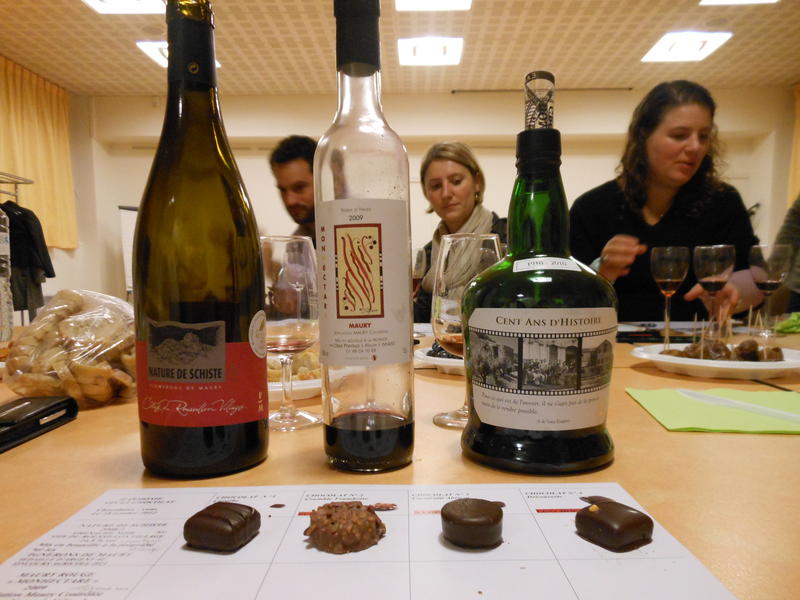 4 chocolats Valrhona, 3 vins du terroir de Maury.