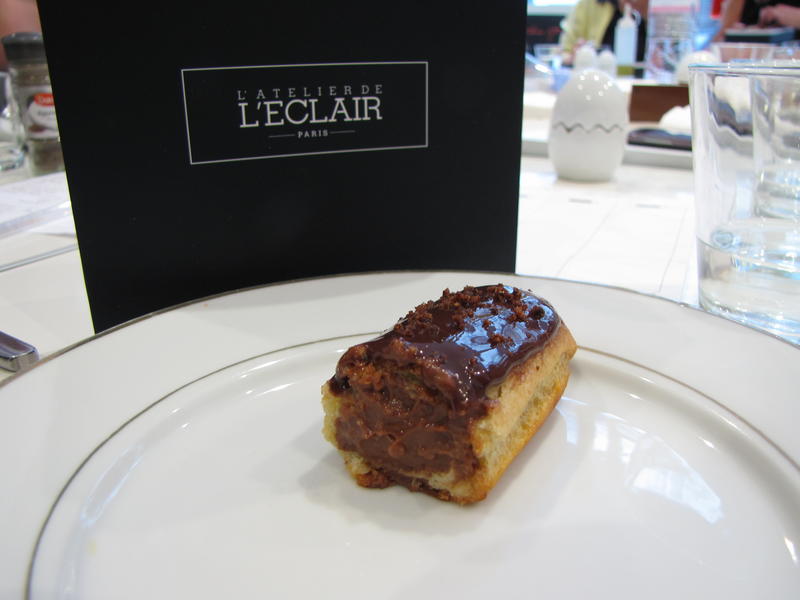 Pâte à choux à l’ancienne, un peu molle, garnie de crème onctueuse, au chocolat noir intense (Guanara et Manjari de chez Valrhona) et aux saveurs très lactées. Belle longueur en bouche. - L’atelier de l’éclair (5.70 euros) :