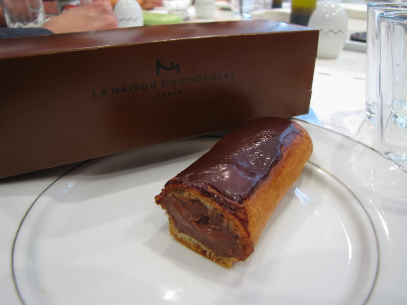 Très long (15 cm) mais très fin, le glaçage manque de brillance. La pâte à choux est un peu sèche et épaisse. Elle sera lors de la dégustation trop présente par rapport à la crème. Cette dernière manque de force chocolaté et à une tenue très ferme (trop ?).