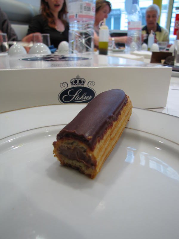 La crème est très légèrement acide, et manque un peu de saveur. Nous ne saurons pas d’où vient le chocolat. - Stohrer (3 euros) :