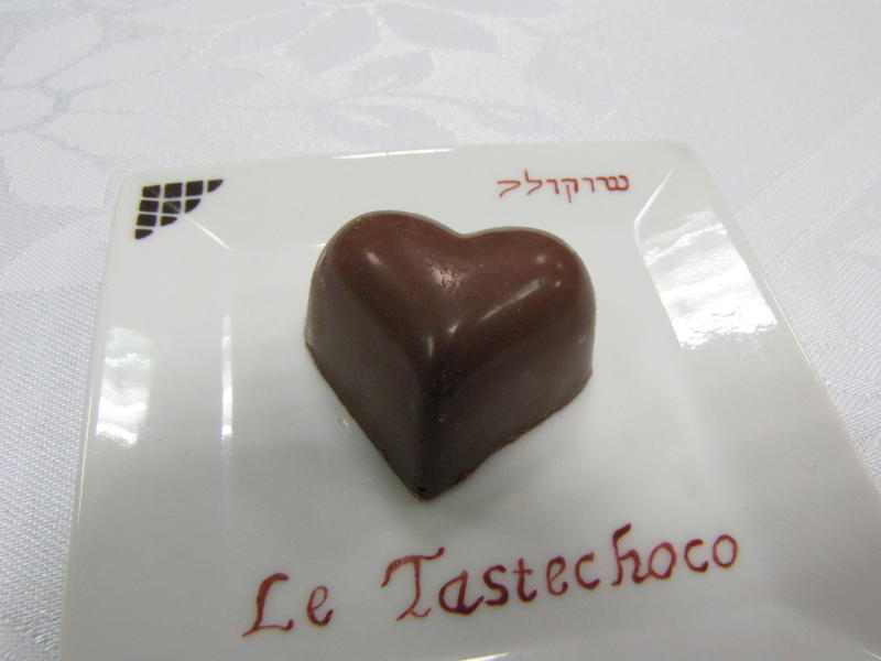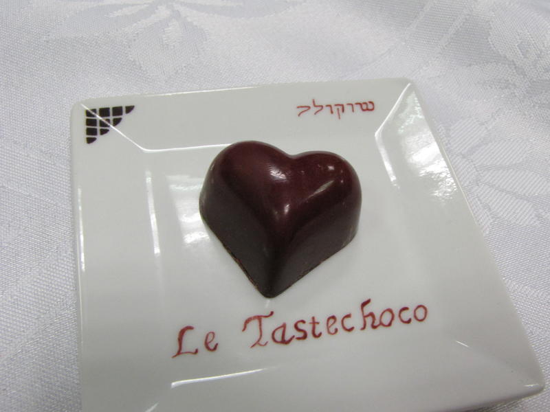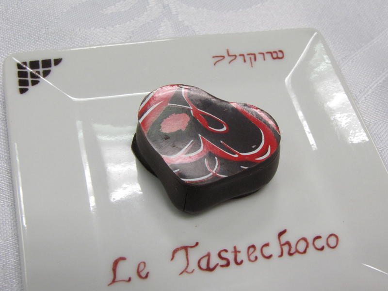 3e bonbon : Cœur framboise-citron vert, poivre de cassis, huiles essentielles de rose de la maison Richart. Une des créations de l’Ode à l’amour. Le cœur de Paul Verlaine se souvient de Mathilde, et c’est en créant cette ganache que Michel Richart y pense.