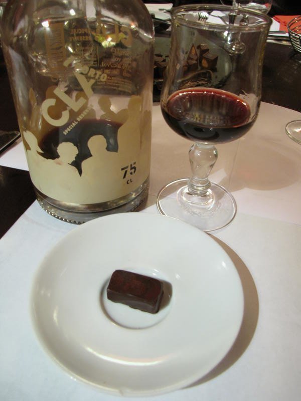 On passe ensuite au porto LBV 1988 Quinta do Cachão de la Maison Familiale Messias. Les raisins ont été récoltés en 1988. Ce porto est très alcoolisé et il faut le laisser s’aérer 10 mn environ. C’est une maison familiale. Rustique au départ, puis d’une grande finesse ensuite. Une orangette de Gillotte s’accorde bien. Une seconde ganache framboise, cette fois de Fabrice Gillotte et on termine avec une amande enrobée de cacao de Pralus.