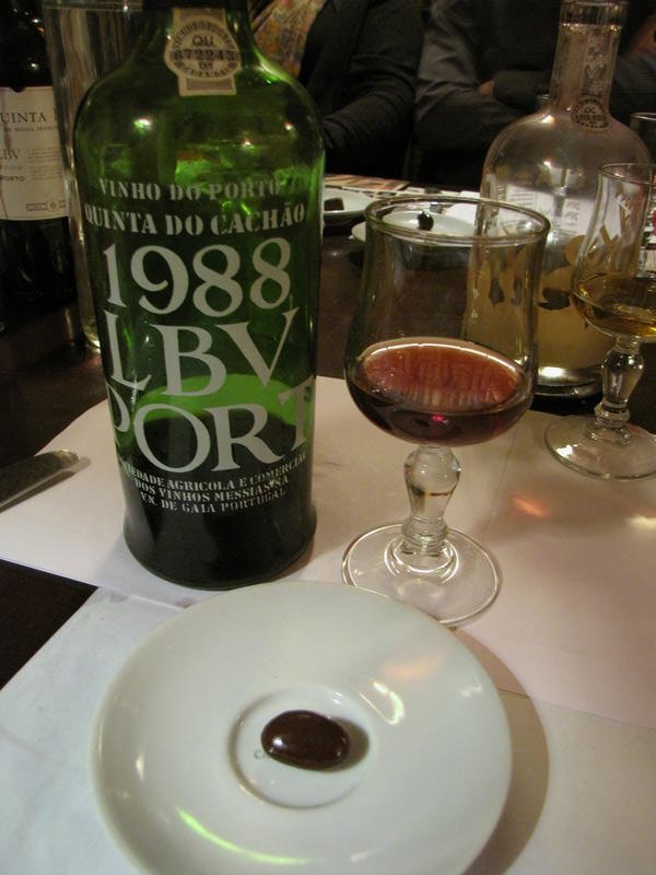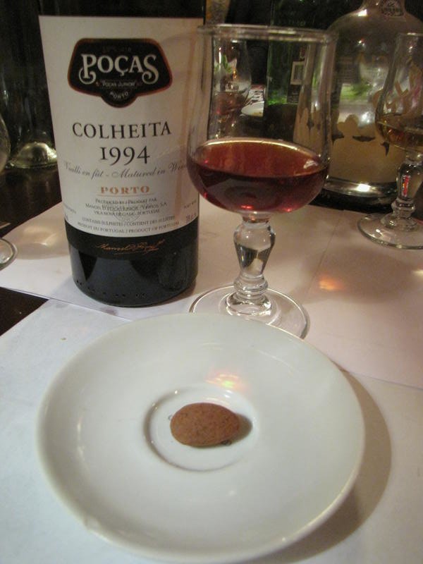 Et pour terminer, un porto Colheita 1994, style Tawny. 7 ans minimum en fût, puis mis en bouteille il n’évoluera plus. Excellent porto. On l’associe à la barre infernale cette fois aux amandes de Pralus et à la fève de cacao enrobée d’un chocolat noir aussi de Pralus. Surprenant.