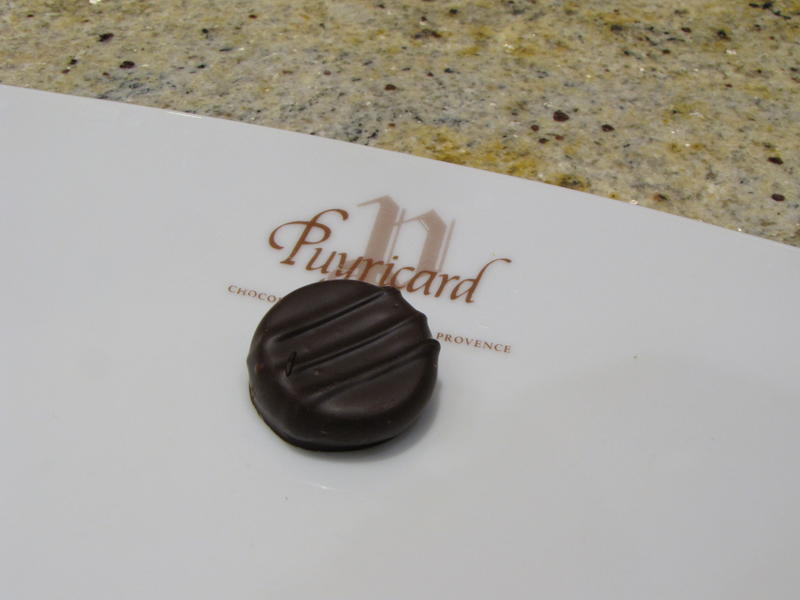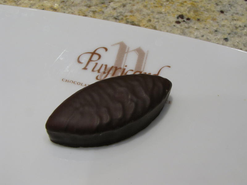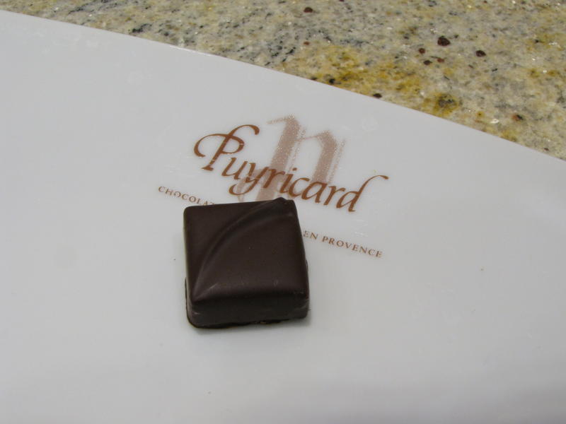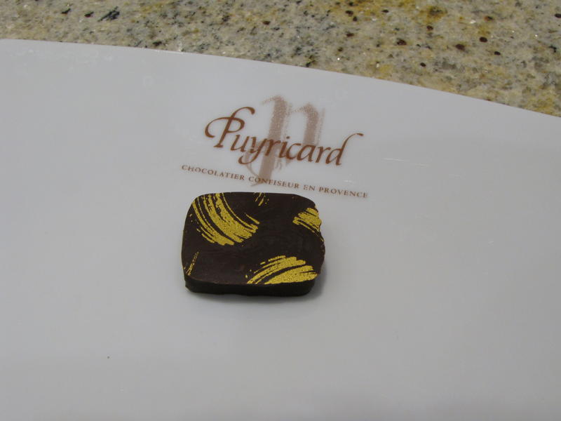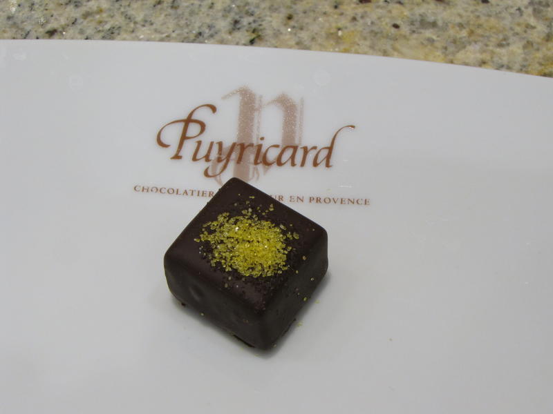 - Le gingembre confit est le dernier bonbon de chocolat de notre dégustation. La première perception olfactive est discrète, mais les arômes de la ganache de ce chocolat noir explosent en bouche. La maison Puyricard fabrique par ailleurs des Gingembrettes, au coté des Orangettes et Citronnettes.