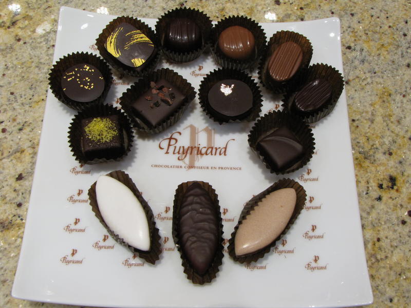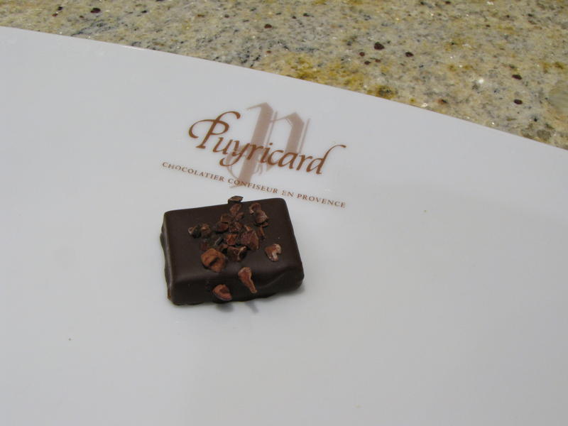 Nous avons été accueillis par le responsable du magasin autour d’une coupe de champagne de la maison Deutz dans la coquette boutique du boulevard Rapp, où la fraîcheur nous a d’abord surpris : 19° en permanence, pour assurer au chocolats et confiseries de Puyricard des conditions optimales de conservation.